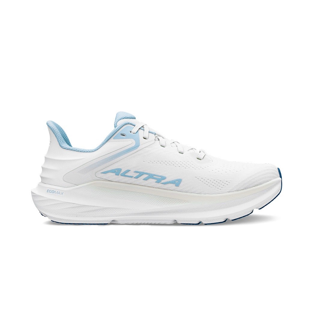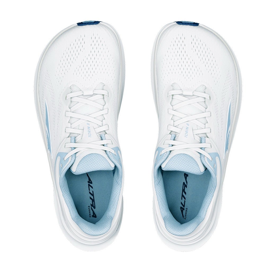Altra W Torin 8 White/Light Blue – suorituskykyinen ja mukava juoksulenkkari, joka tukee luonnollista liikettä.