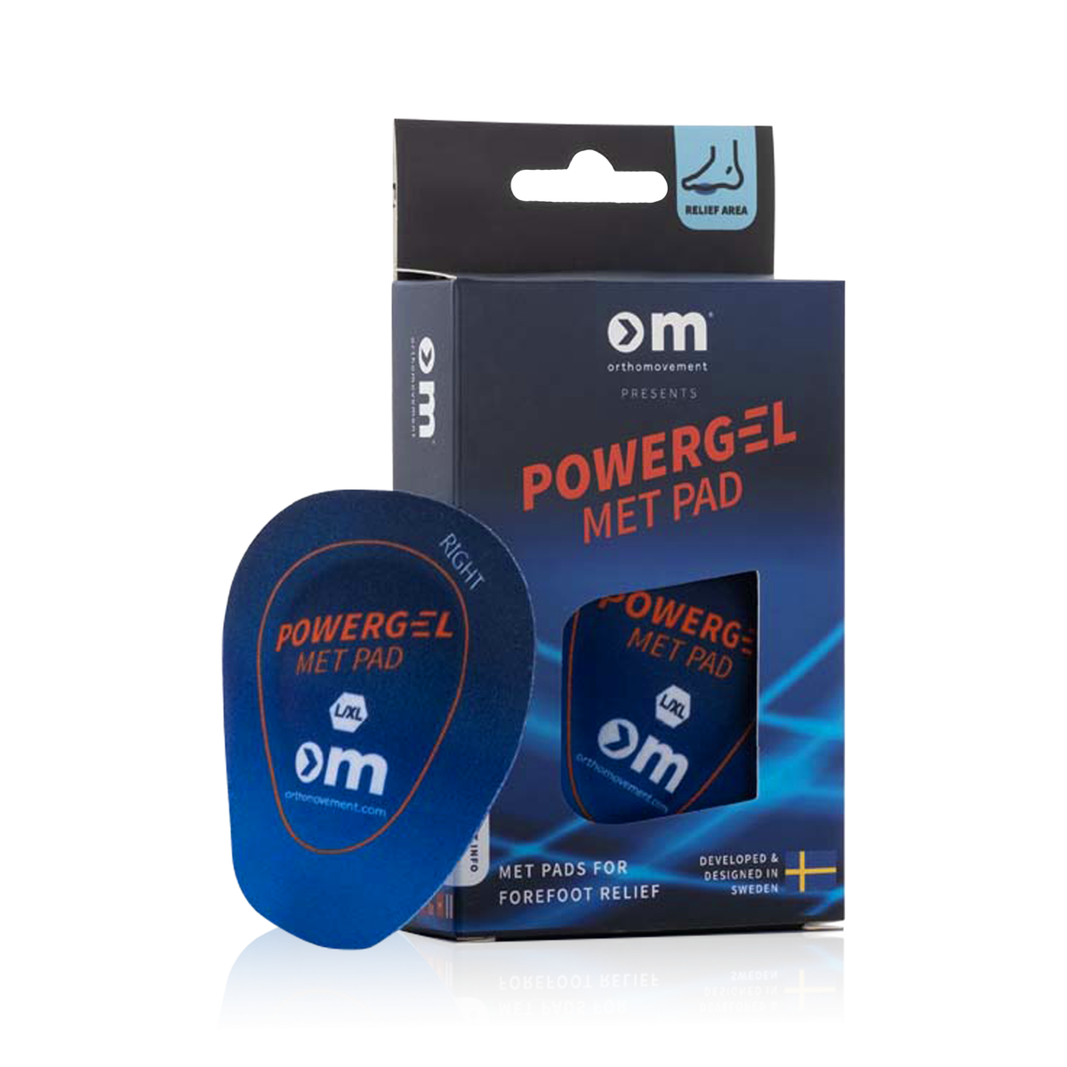 Powergel Met Pad on suunniteltu tukemaan jalkaterän poikittaisholvia ja lievittämään päkiän alueen kipua, esimerkiksi metatarsalgiassa. Pehmeä geelityyny asettuu jalkaterän etuosan alle ja jakaa painetta pois herkiltä alueilta – parantaen kävelymukavuutta ja vähentäen kuormitusta.